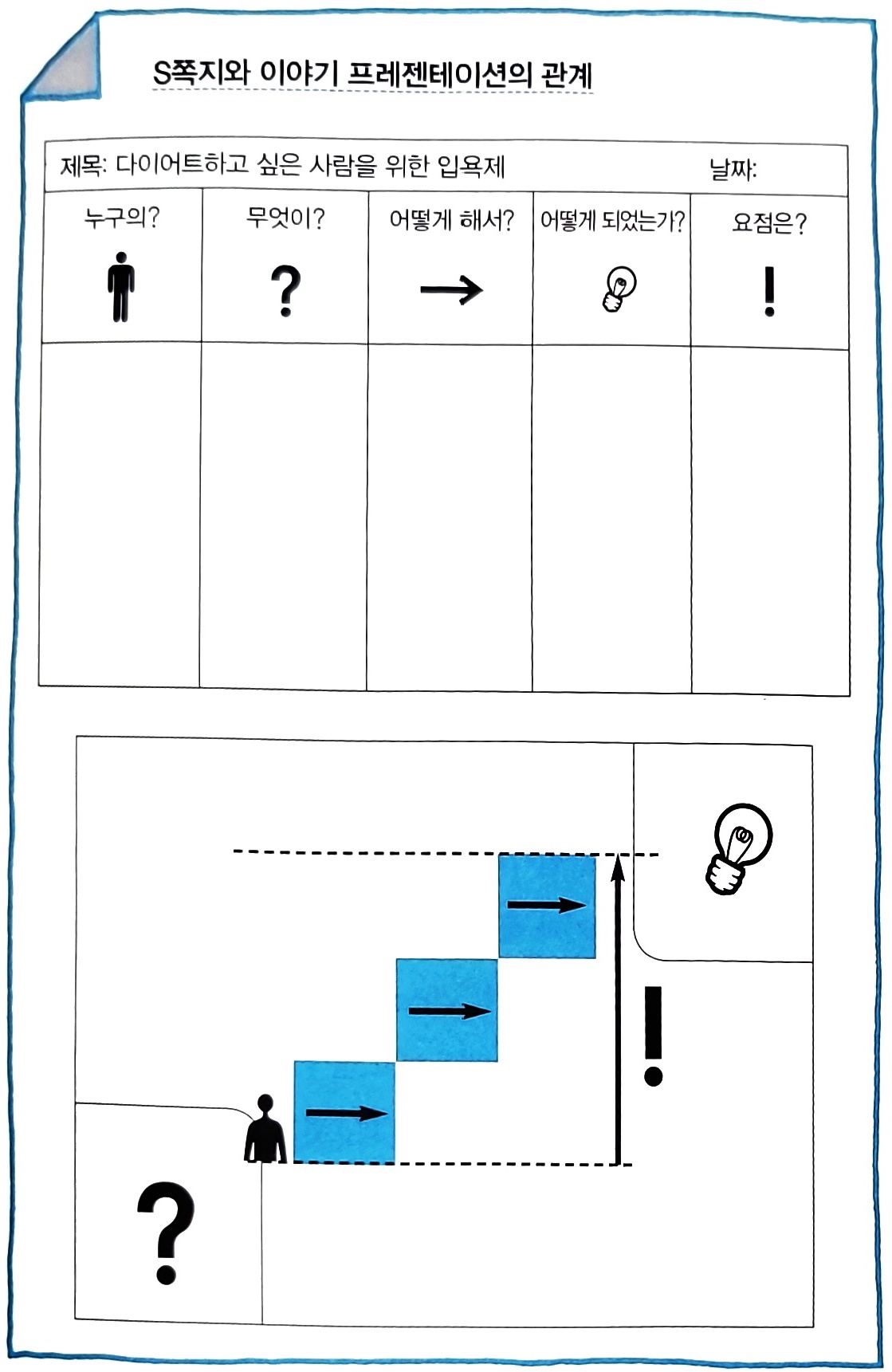S쪽지에 기입하는 다섯 가지 요소 예